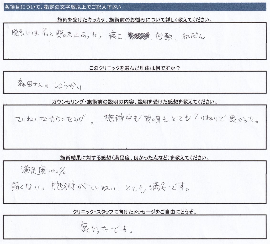 今日は、治療を受けて下さった方のアンケートです。
