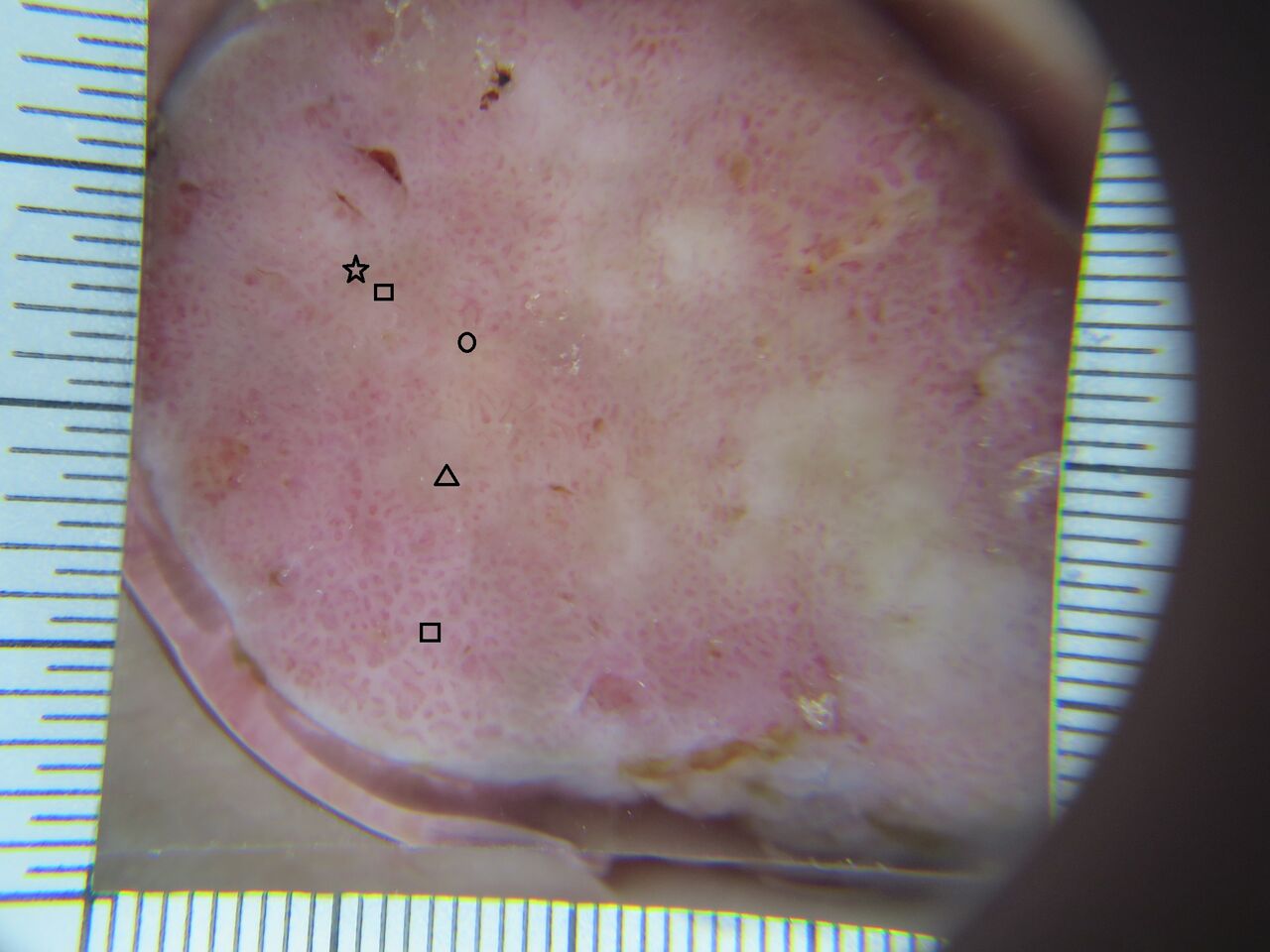 高濃度トリクロロ酢酸と低濃度過酸化水素とコウジ酸が主成分です。