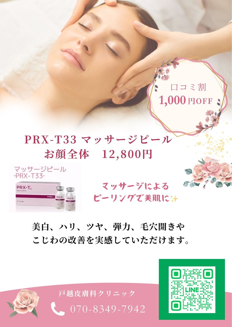 イタリアで開発されたピーリング剤「PRX-T33」を使用したマッサージピールのご案内です。
