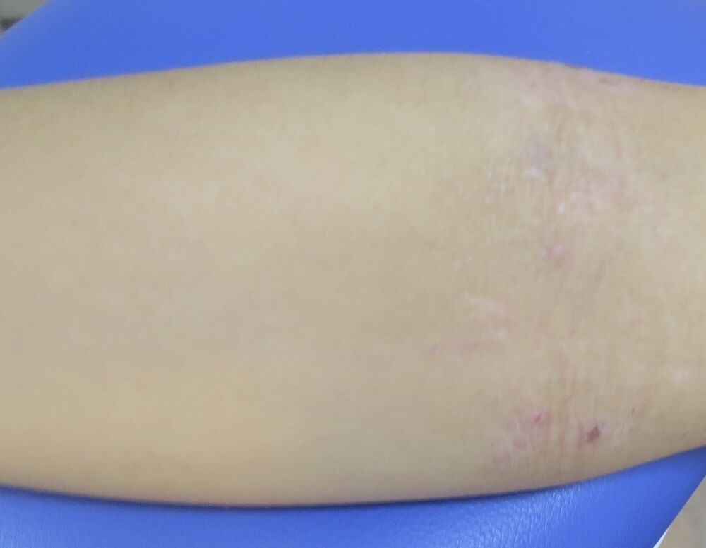 2) 腋・ヒジ上・ヒジ下腕全体の医療レーザー脱毛を21000円(税込み23100円)で施術致します。
